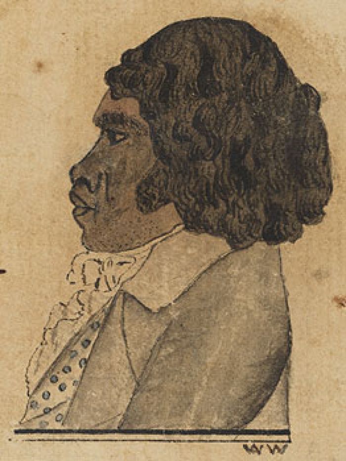 National Library of Australia Picture and caption: Portrait of Bennilong, a native of New Holland, who after experiencing for two years the luxuries of England, returned to his own country and resumed all his savage habits [picture].Bennelong (1764–1813)