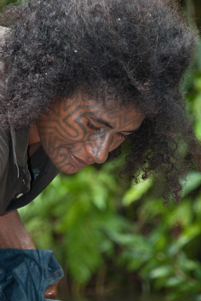 When a Tufi girl is ready for marriage she might, for some weeks, enter the hibernating process of getting a facial tattoo. The tattooing is an old traditional practice that has faded away and disappeared in most communities, but there are some areas where the tradition lives on.