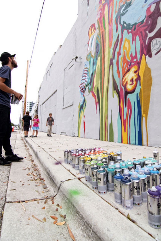 Johnny Robles an artist, creates cool street art in the streets of Miami. With a mixture of cartoon and pop style drawings and graffiti techniques, he gives color to the streets. Residents say they love it..and so do I.