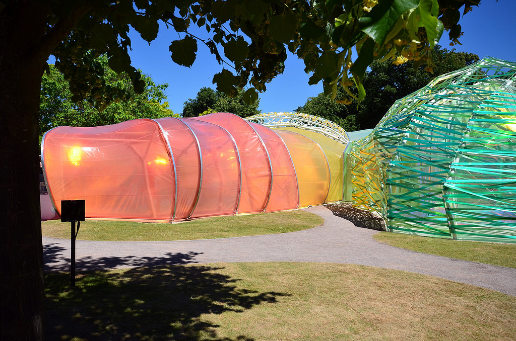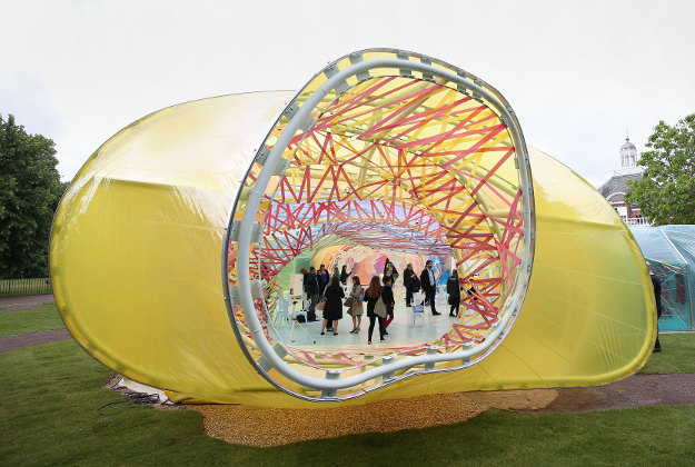 Selgas Cano are never shy about experimenting with wild colours, and their summer structure for the Serpentine Pavilion is no exception. This strange rainbow cocoon looks like a childish scribble that has been enlarged, changes colour as you wander through it – and is a perfect party pavilion for the annual Serpentine commission’s 15th birthday.