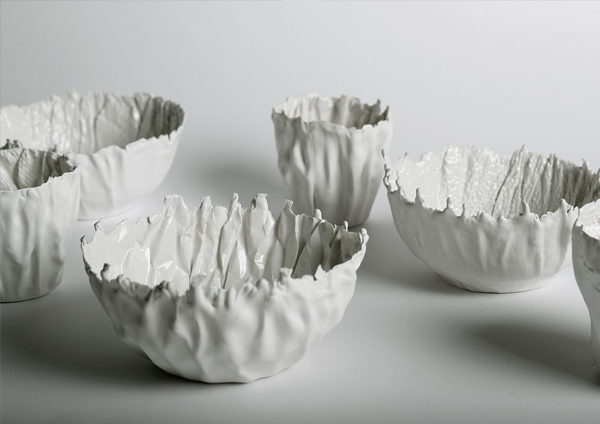 Lilian says: ‘Delicate Textures’ she hopes, would make us think about the everyday use of products and materials. In this collection paper is immortalized in an exclusive porcelain object. It is a tribute to paper and its origin. It makes us aware of the self-evident use of paper, since it appears and disappears again and again in our daily lives.