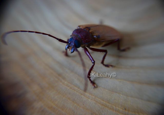 The brown/reddish native beetle from the Cerambycidae family (according to Queensland Museum) was supposed to live in open forests and woodlands throughout Australia. It has been accidentally introduced to many overseas countries where it is a serious pest in eucalypt plantations. The white, legless larvae of this beetle bore under the bark of recently dead or sick eucalypts lives for several months.