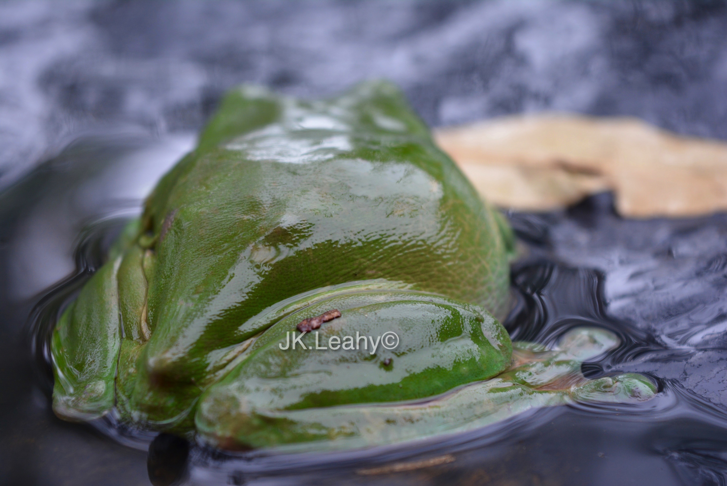 Although they are called the tree frog, they love to live in building drain pipes and water tanks. In summertime of course, they love wide open spaces with waterways…I guess that’s why this frog found this spot and stayed. I wish I could have told the frog this was not a waterway, but as soon as the rain stopped, it disappeared.