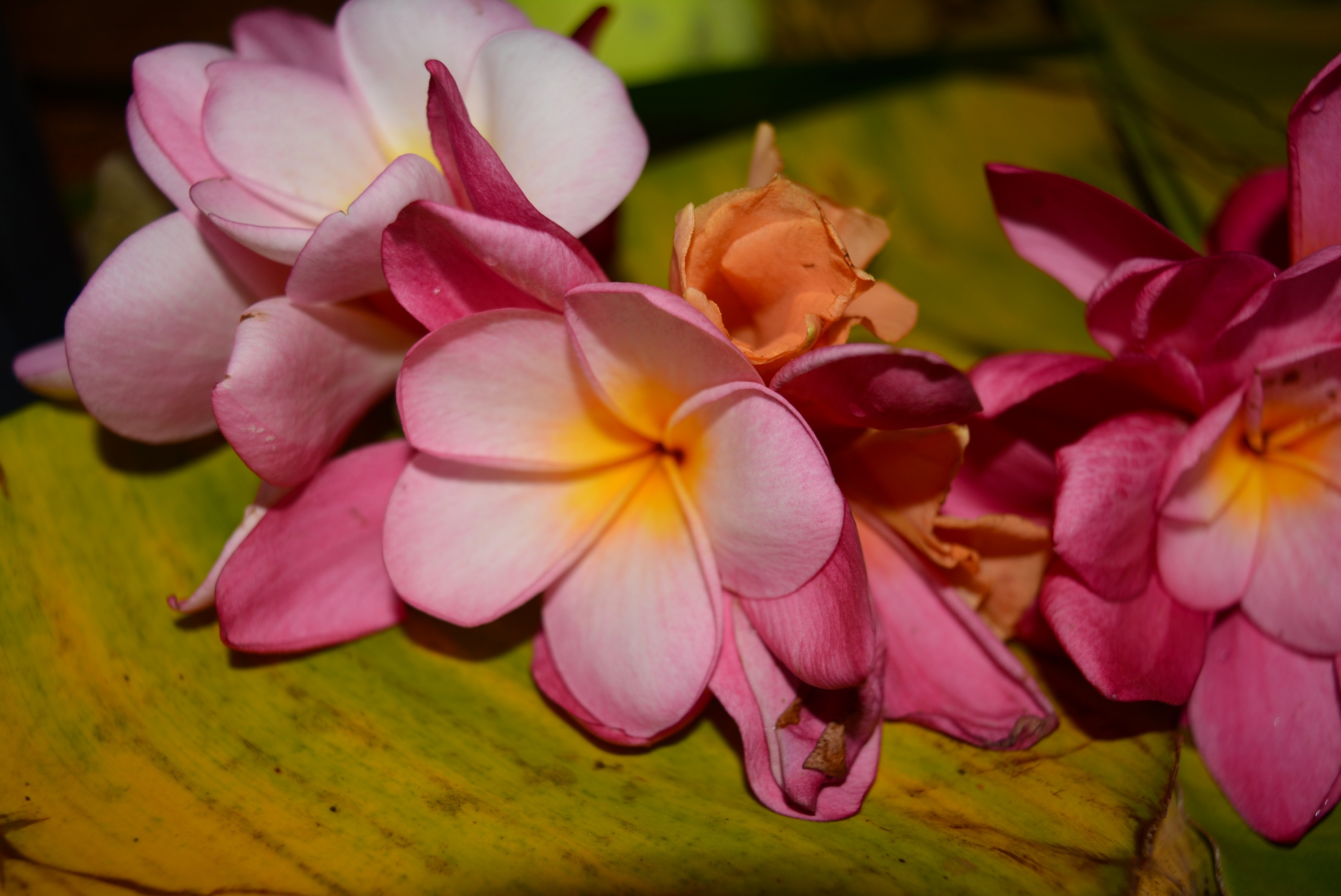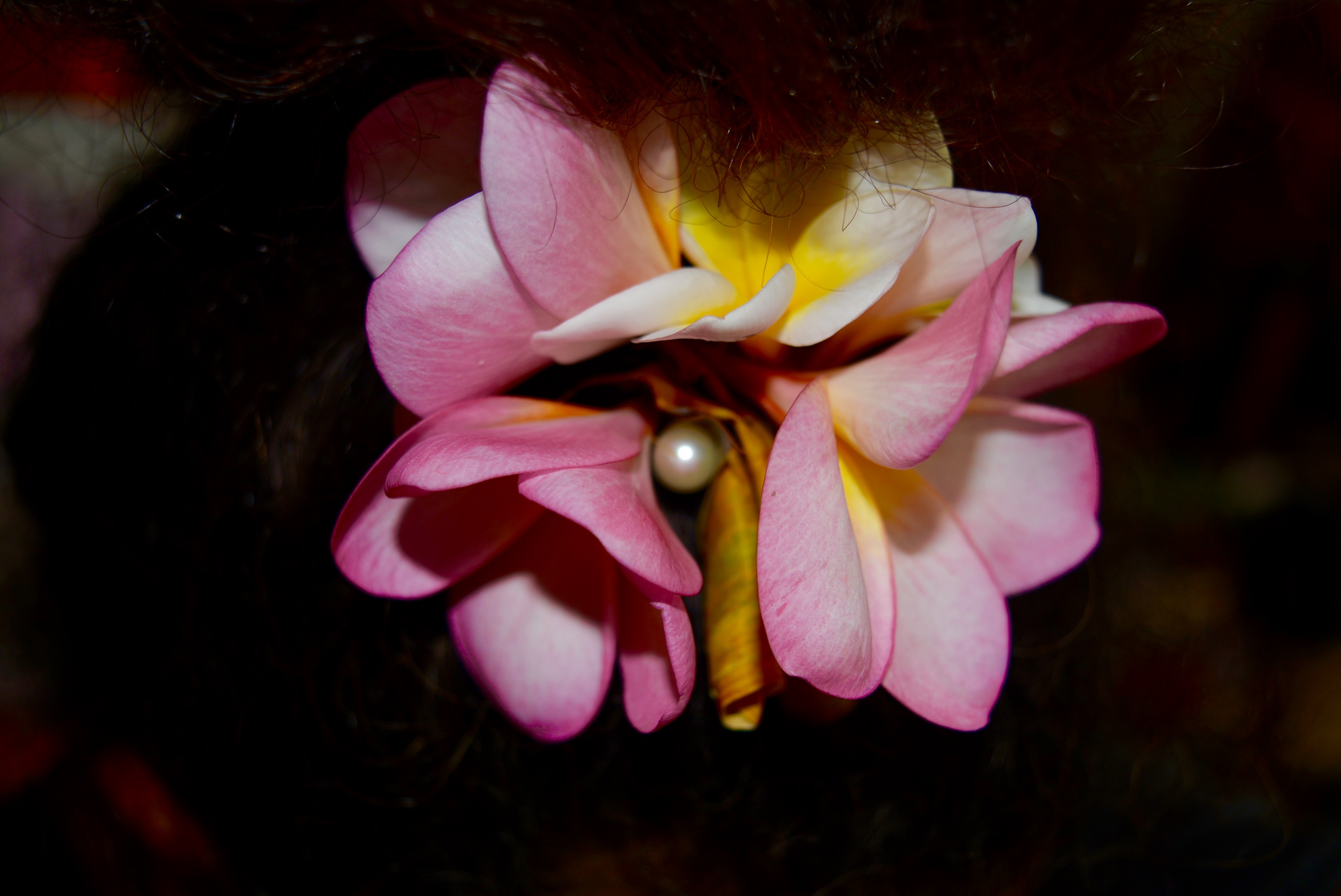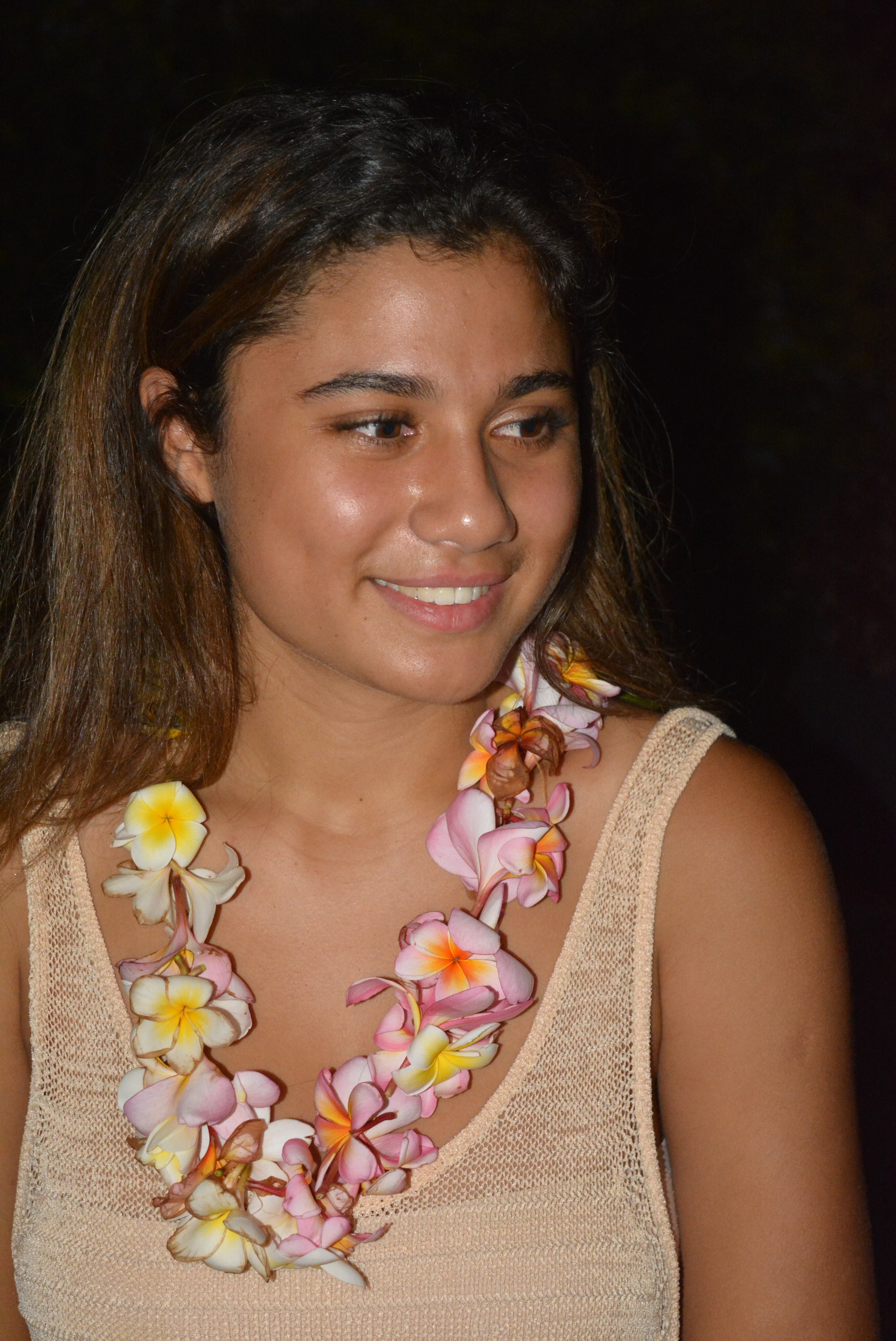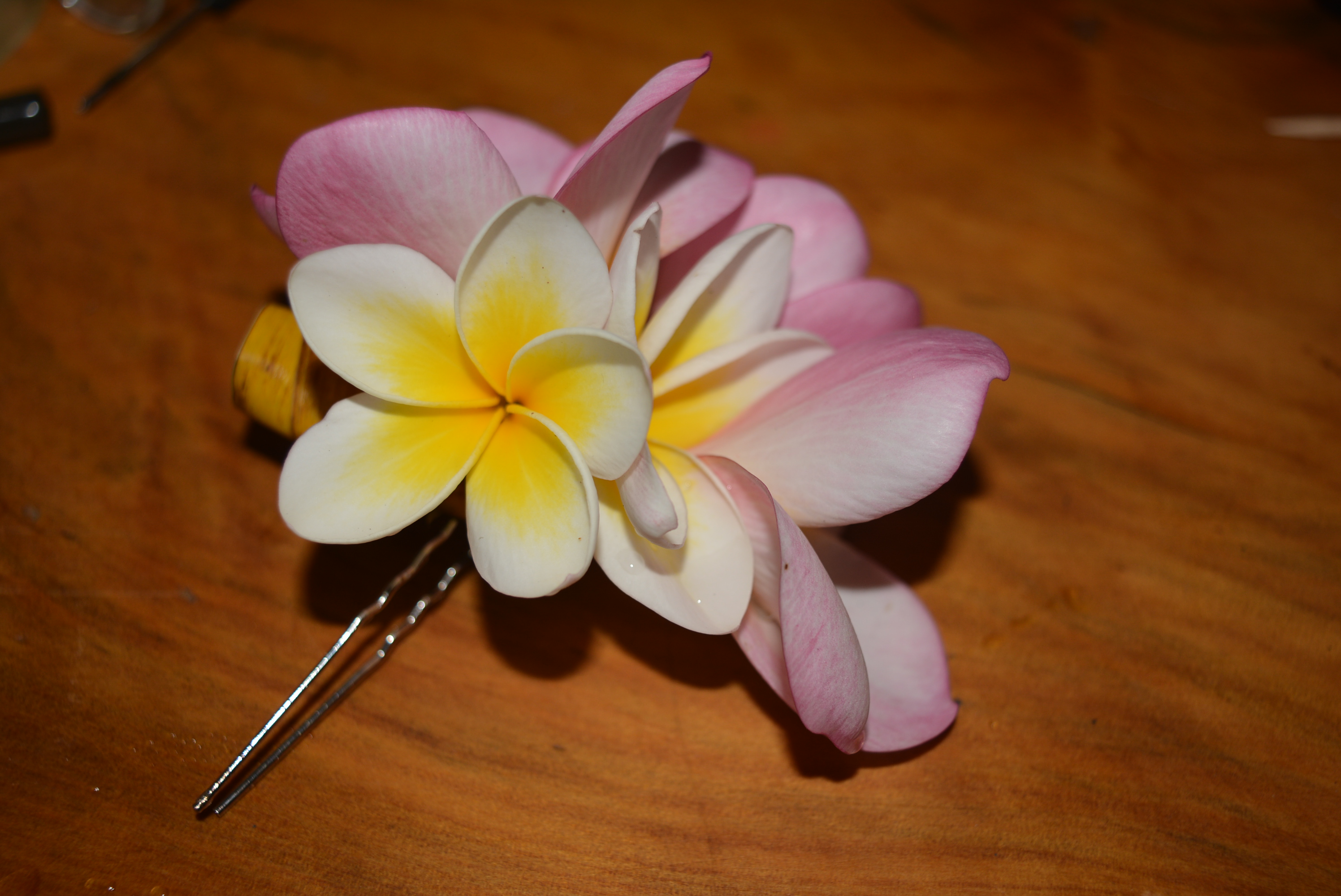 On her return, Marcelle wanted a Bahamas party for her 18th with lots of colour and tropical scenes. Everyone wanted leis, but the frangipani season had just ended. As she had wished, we set up her sister Livu’s place to look like a small holiday nook in the Bahamas. A quick drive around Brisbane city with a visit to my own gardens gave us a small bucket-full of frangipani flowers, but just enough for me to make everyone a corsage. The party started to look ‘Pacificky’ – but it was pretty all the same. The reggae music kept it slightly different. And, the birthday lady received a lei.