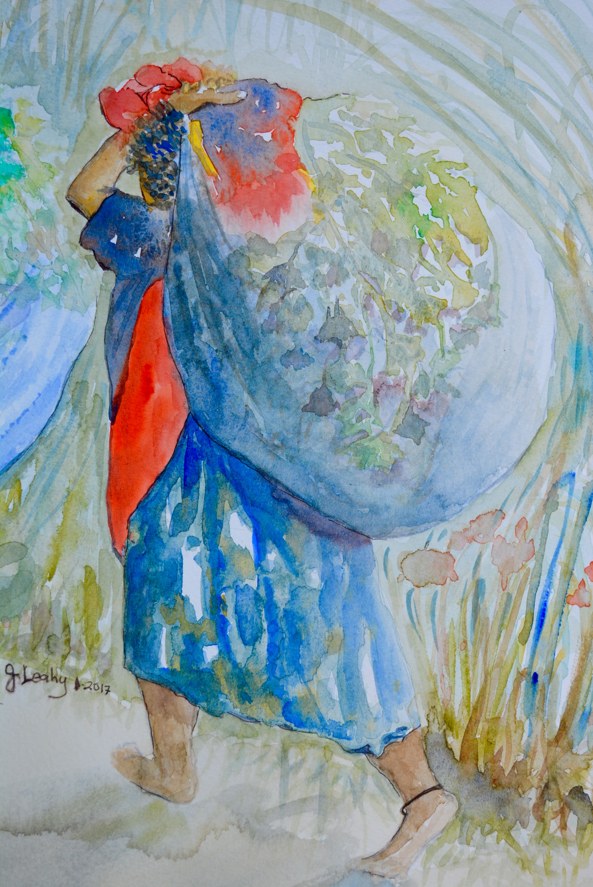 It was natural to have kaukau on my mind when I painted my first watercolour this year. Women is Papua New Guinea, especially in the highlands, share kaukau cuttings and this is how they transport the leaves – in bilums. Sometimes they would be given the cuttings by friends and family members. Other times they bring the cuttings from the garden home to plant near their houses.