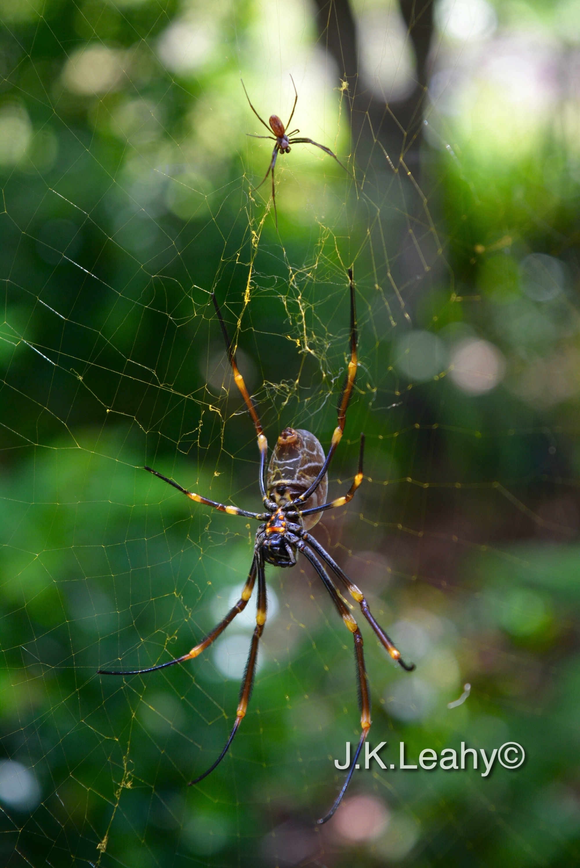 I wanted to begin 2017 with a tough shot I tried to take throughout the day today. It was not easy to photograph this mother and baby spider together; one on either side of the web and with the breeze flanking their gold web like a flag. Lucky for me, they did not move away from this super location (from the back veranda to the garden) and at various times, when I tried to take a better picture, both insects could not keep still. I hope you like the pictures.