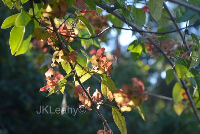 My star tree, the poinciana still has all its leaves in the middle of winter.Sunlight started to penetrate through the gum leaves when I returned home.This Olive tree has never had fruit. Someone told me to plant a mate for it.