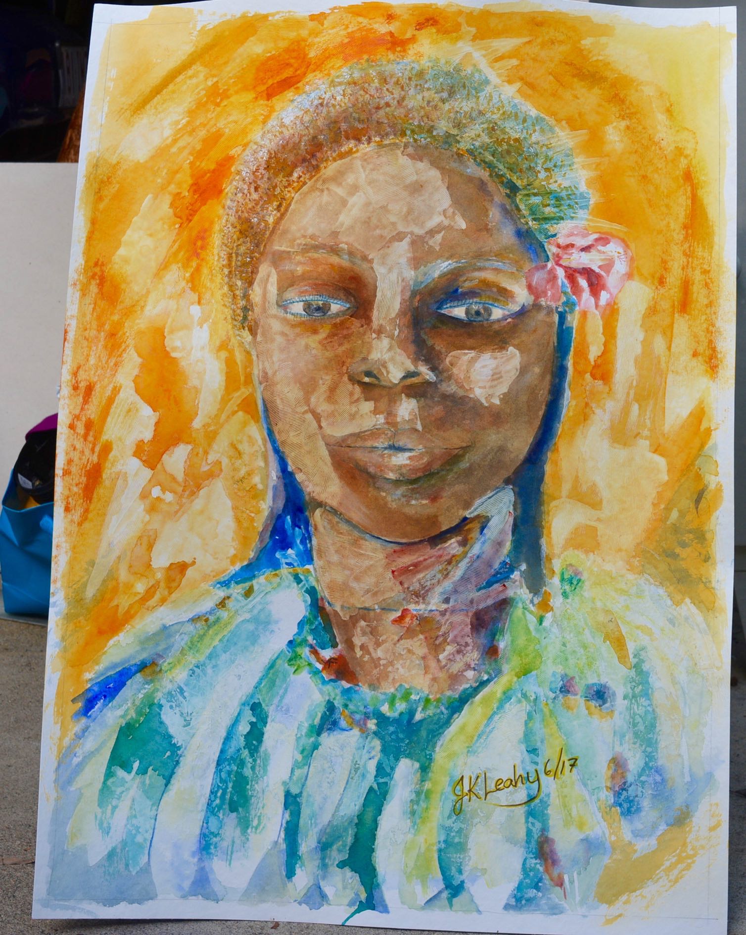 I am painting more watercolours and that’s why I’ve been silent on this blog. It feels like I’m telling a story in a different way and this is very fulfilling. I have a few assignments to finish but I wanted to share one of these ‘stories’. Here I am working through an artwork of a young woman from Simbu, Papua New Guinea. I love her headdress and feathers. Birds are interesting and amazing creatures, but when you paint so many bird feathers, it is quite challenging. And because I love lorikeets and have raised them – there is the guilt …of the dead birds, but there’s another story – culture, nature conflict…