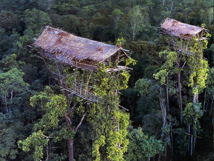Irian Jaya’s Kombai and Korowai people live in houses built in the treetops.